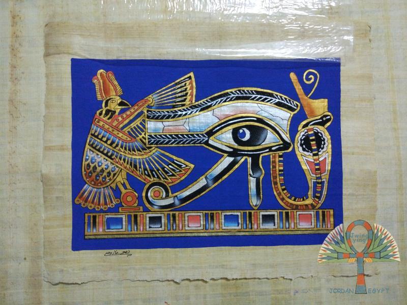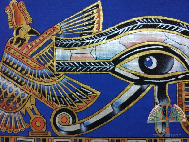 Egypt handmade natural bark Sashgrass paper painted retro abstract blue Horuos Eye no frame single piece of decorative painting