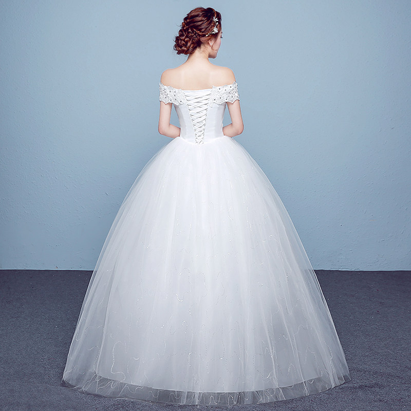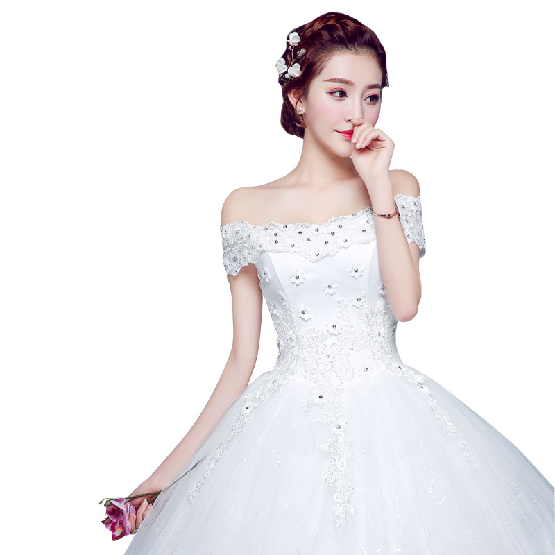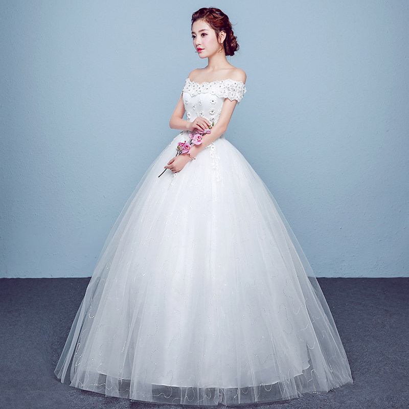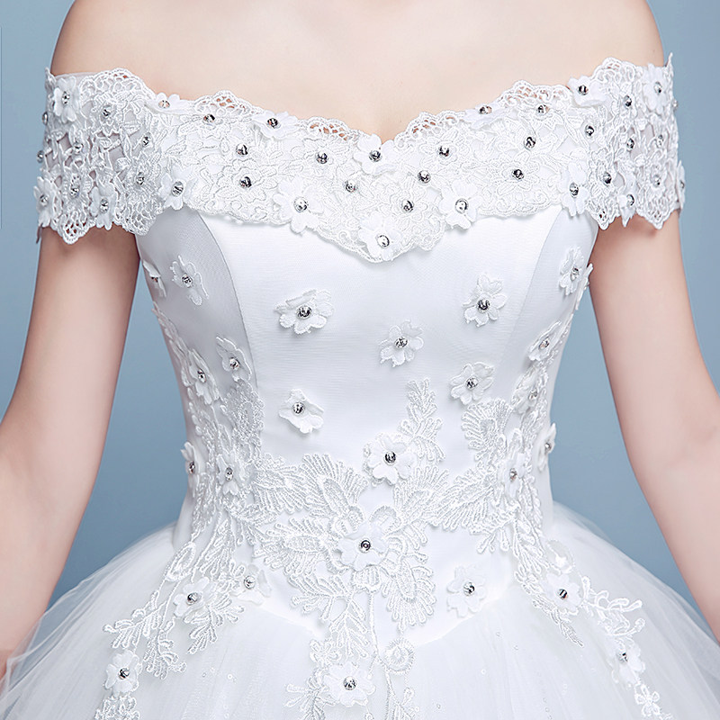 One Word Shoulder Lace Wedding Dress Dress 2021 New Korean-style Bride Wedding Conspicuously Princess Wedding Dress Spring Summer