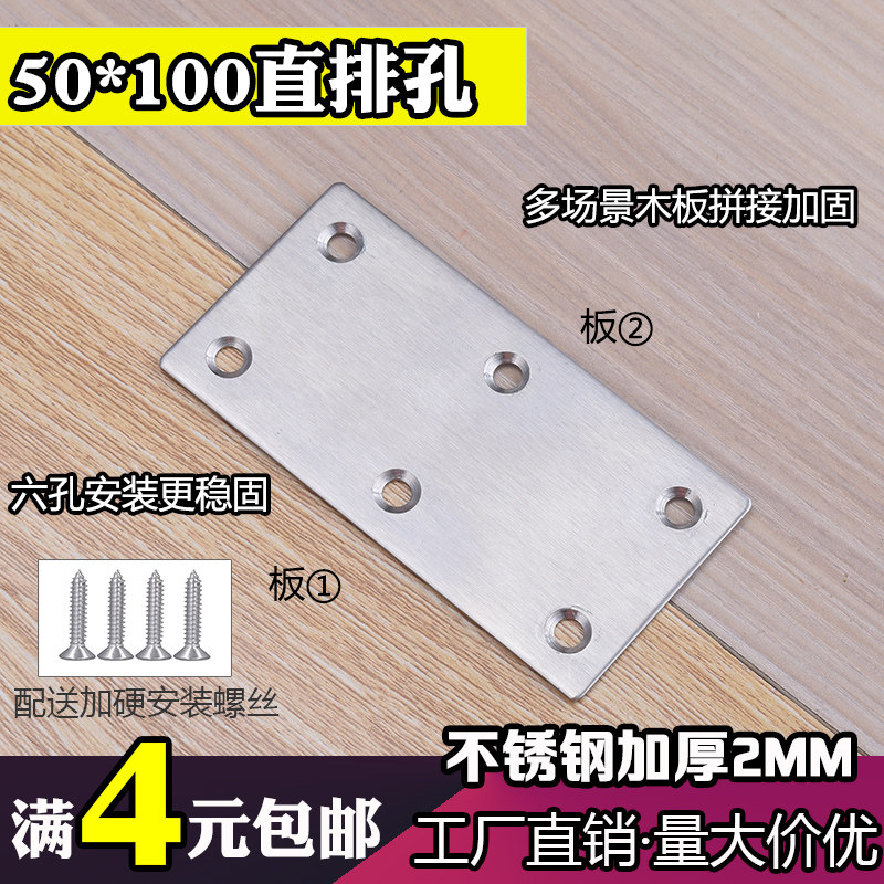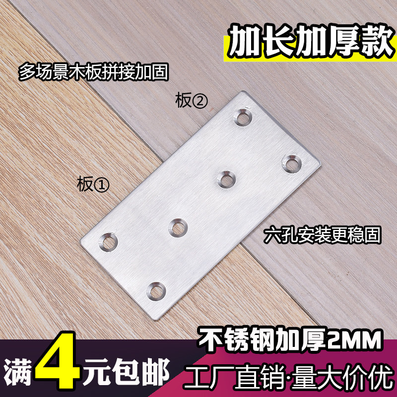 Stainless steel straight piece code one word thickened straight plate steel sheet wood table and chair bed reinforcement 180 degree furniture connection accessories