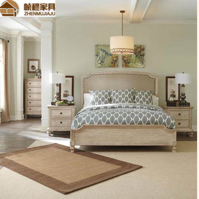 American countryside antique solid wood bed Fab-style retro white made of old 1 8 Double Eurostyle Mediterranean high-end bed furniture-Taobao