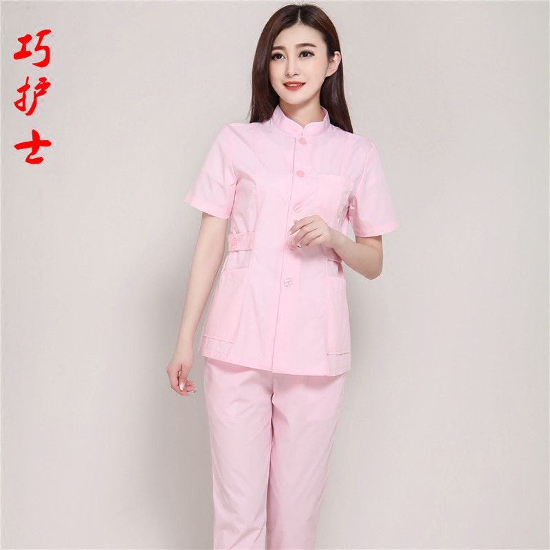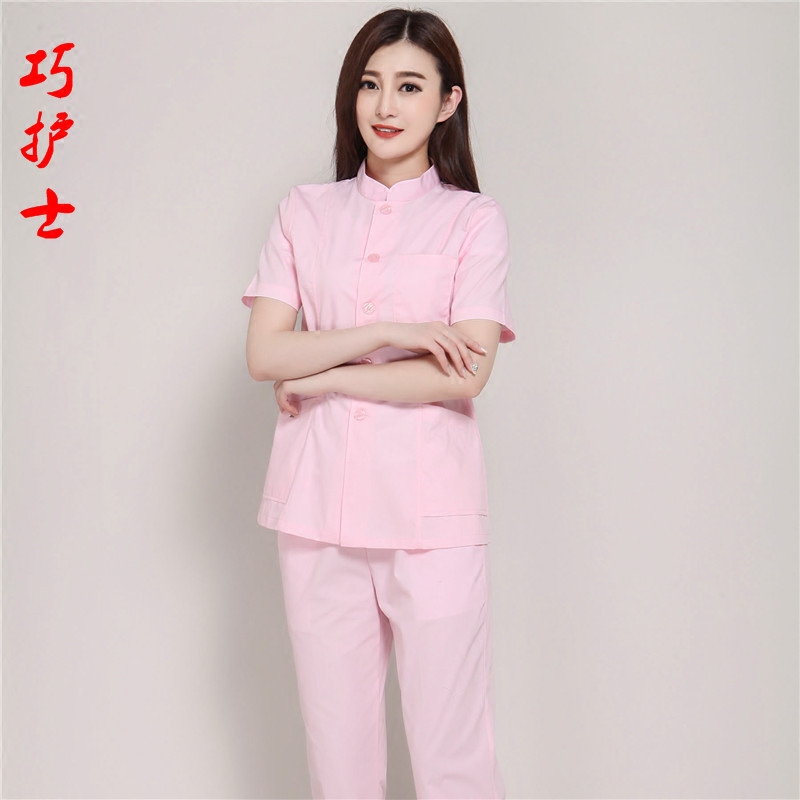 Clever nurse pink stand-up collar split nurse suit short-sleeved pharmacy glasses shop beautician overalls
