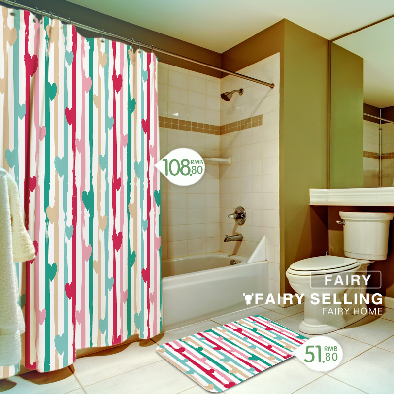 Pink cute shower curtain set custom waterproof thickened mildewproof powder room European-style bathroom curtain Toilet partition curtain
