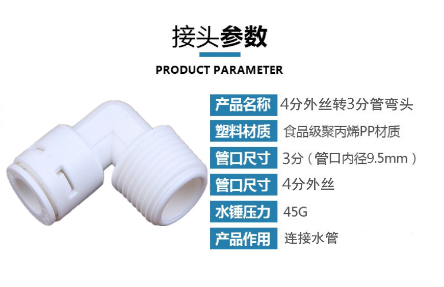 Water purifier RO pure water machine 4-point outer wire tooth turn 3-point pipe elbow 20-inch bottle water inlet connector L-shaped external thread