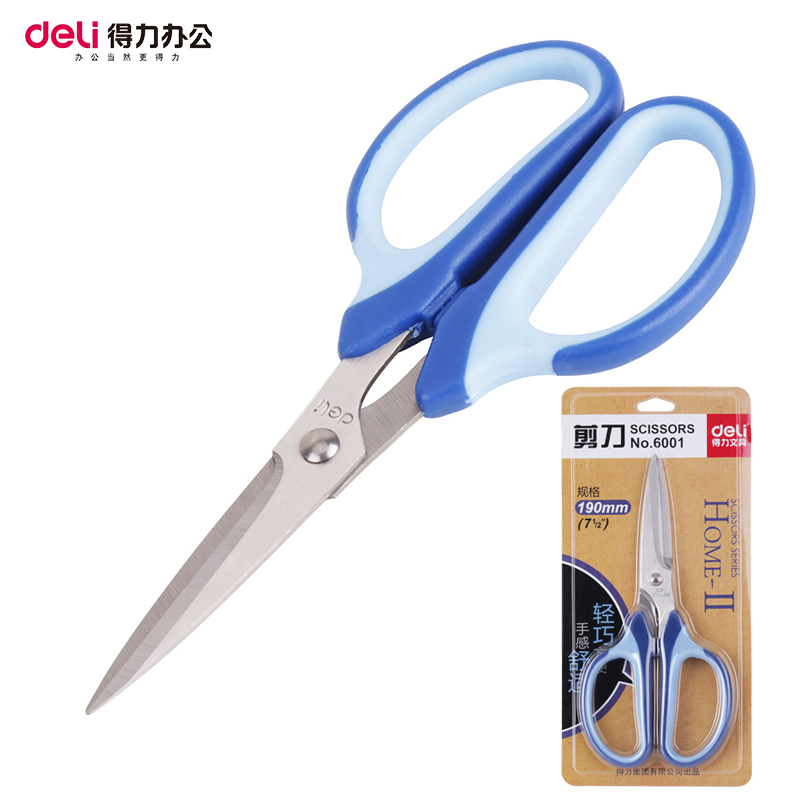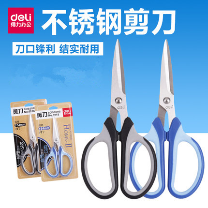 (2)Deli scissors Office paper-cut handmade stainless steel scissors Student stationery household small scissors