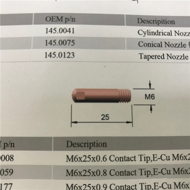 Golden Ball Welding Cutting Black Wolf Gas Retention Welding Gun 15AK Wire Feed Nozzle Conductive Nozzle M6*25*0.8 1.0 1.2mm