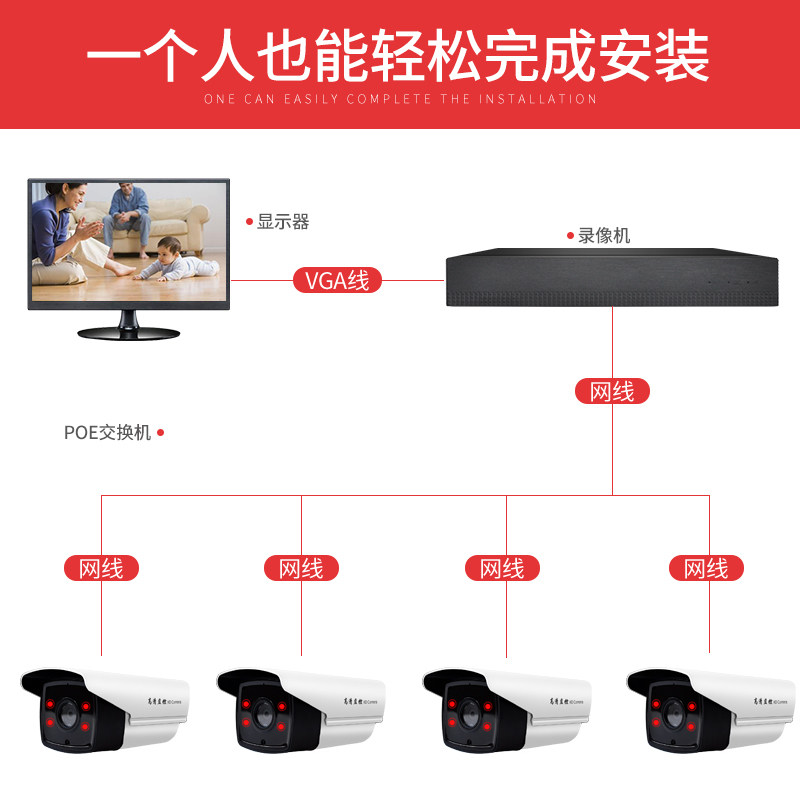 Wired high-definition monitor set household 3 million network POE camera outdoor monitoring device does not require a network