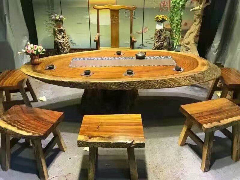 Black gold wood round table tea table without stitching solid wood large board small coffee table Okan walnut tea table ring spot