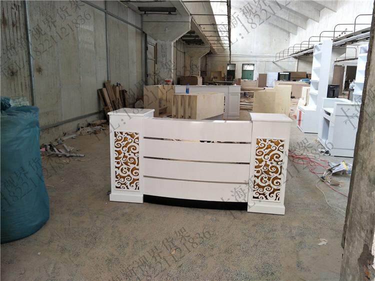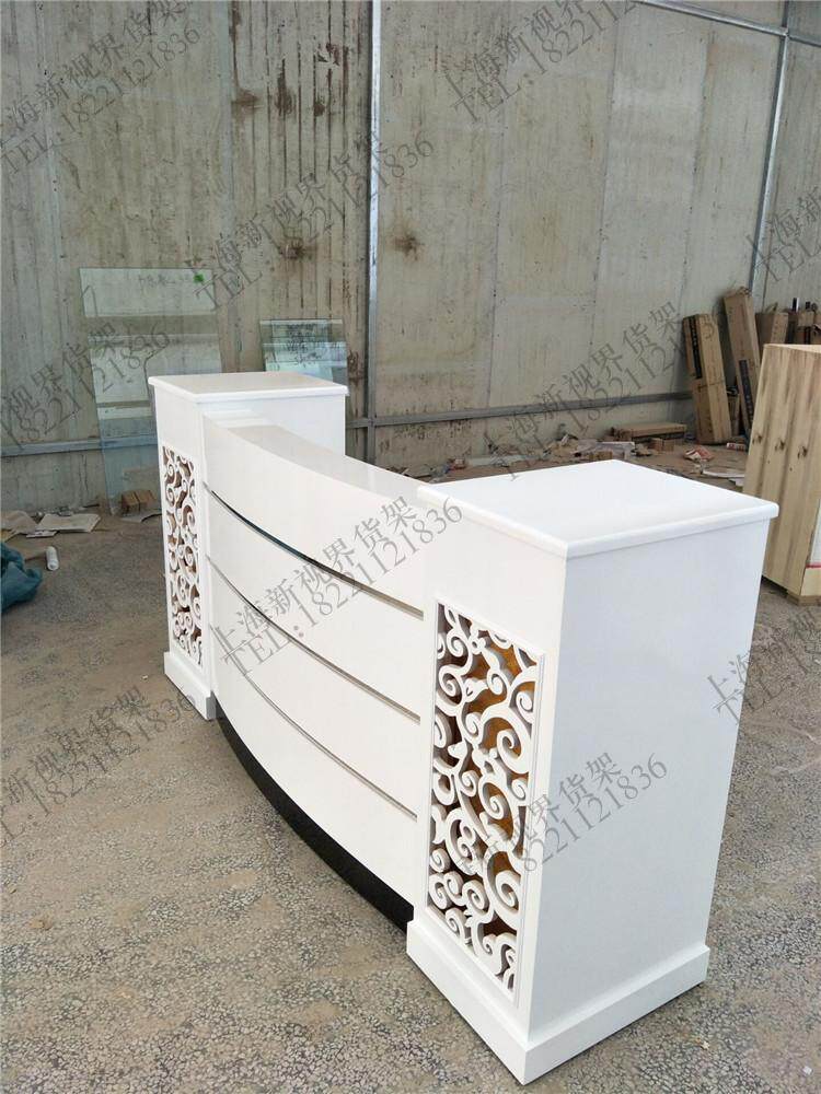 New European style wooden paint beauty salon cashier counter reception desk curved carved counter clothing store front desk bar