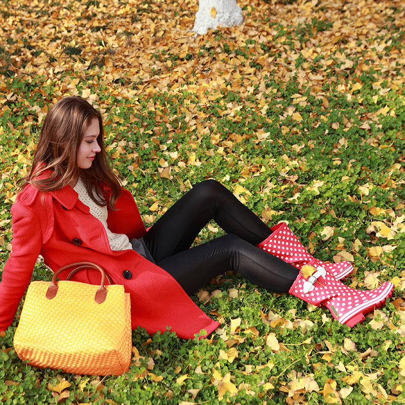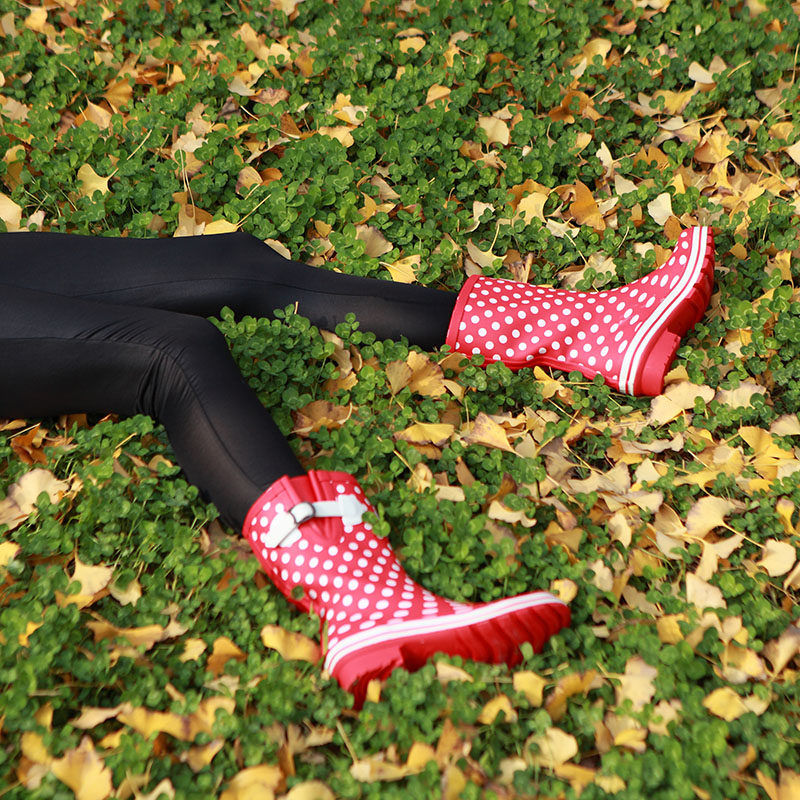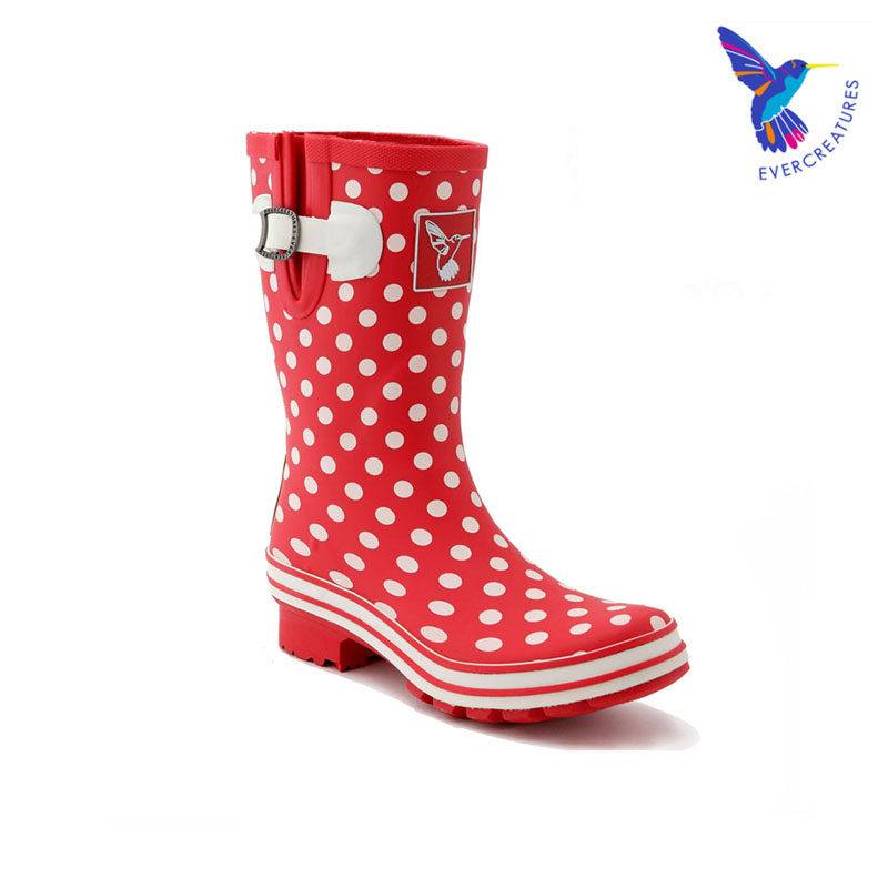 UK Evercreatures Mid Rain Shoes Red Dot Rain Boots Skidproof Waterproof Shoes Water Boots Women