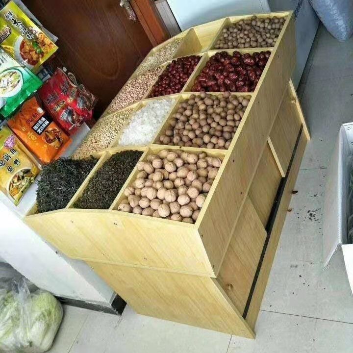 Supermarket Wooden Shelf Rice Barrel Grain Cabinet Bulk Cabinet Rice Dou Grain Display Cabinet Dried Fruit Cabinet Bulk Container