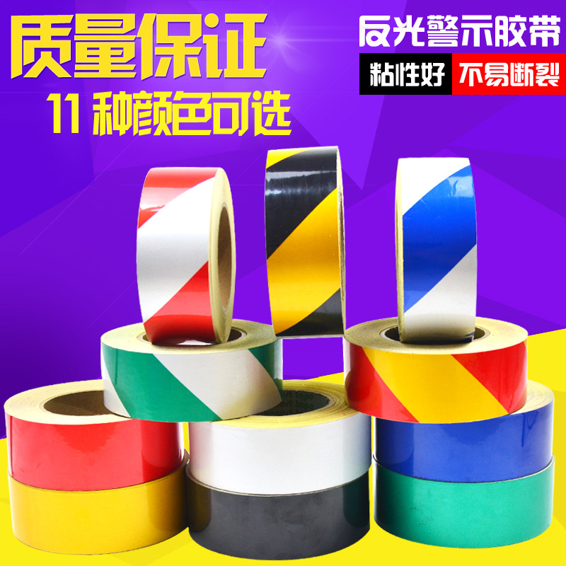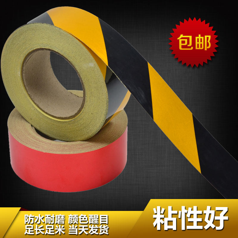 Red and white traffic reflective patch Yellow warning bar Red film ground marking tape paper black safety warning glue
