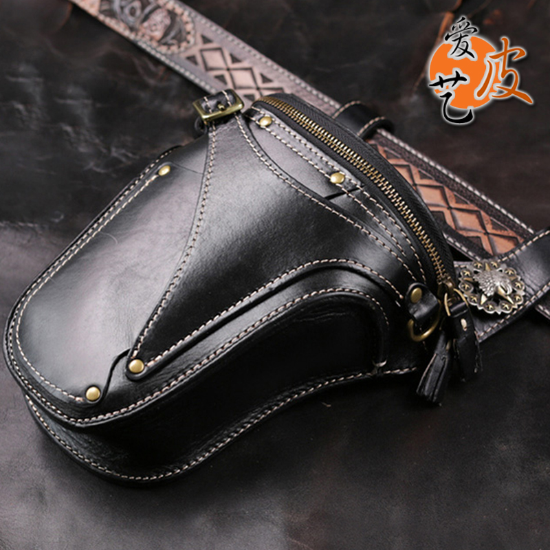 Harley belt bag men's cowhide multi-purpose mobile phone cross-body bag men outdoor vintage motorcycle motorcycle riding bag