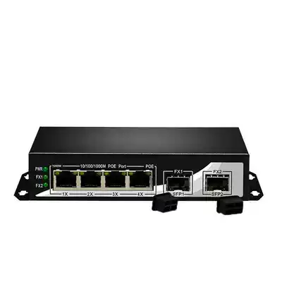 Full Gigabit 2 Optical 4 Electric POE Optical Fiber Transceiver Switch 4 Intersections Standard Power Supply 2Gigabit SFP Optical Port Monitoring