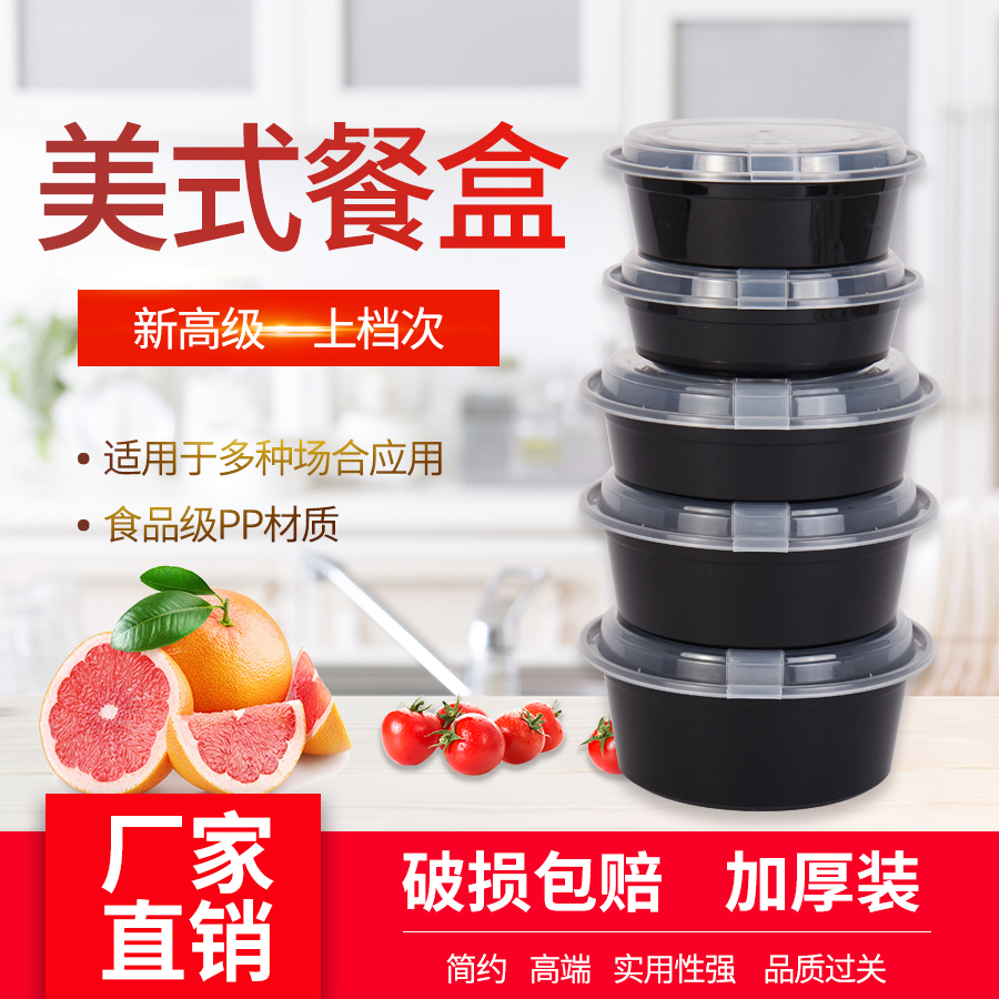 Snap-on black round plastic lunch box Disposable fast food box with buckle delivery packing box Square lunch box thickened