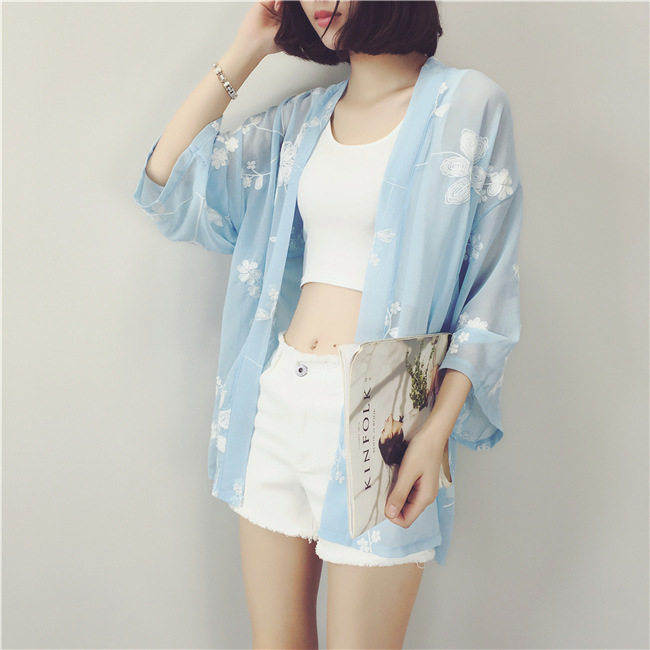 New snowspun embroidered bikini sunscreen jacket swimsuit 70%-half sleeve open-shirt with air conditioning shawl beach suit