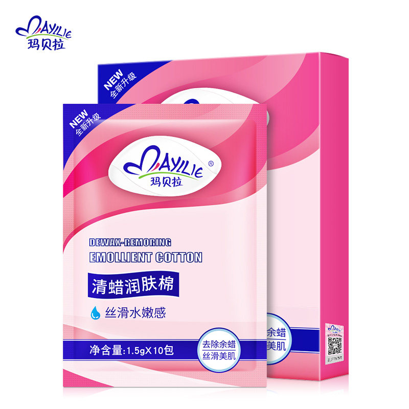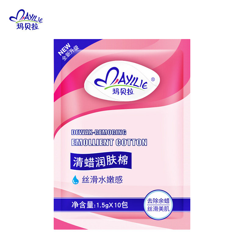 Marbella clear wax emollient cotton 10 bag waxed paper wet wipes clean with residual residual wax on the skin
