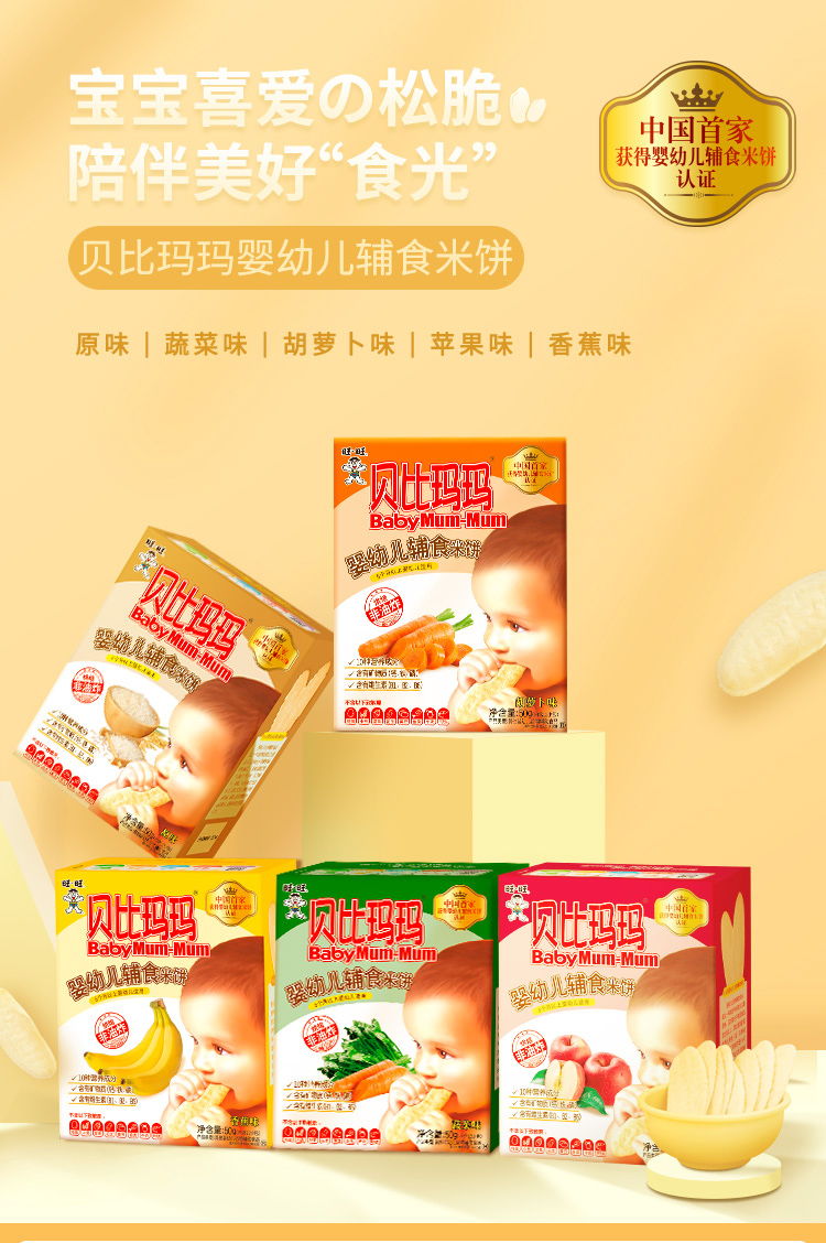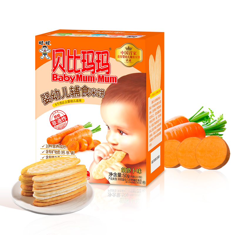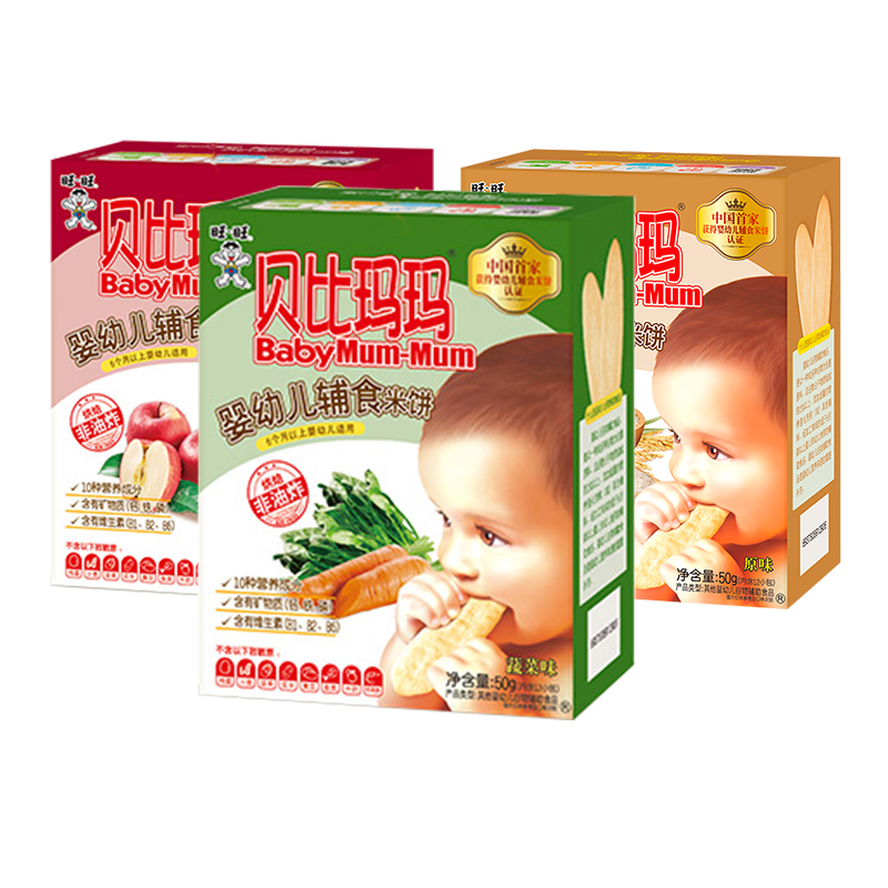 Want Want Beibi Mamama Rice Cake Baby Molar children's snack biscuits Original non-food rice cake 50g*3