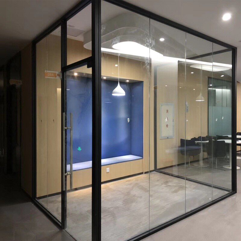 Hangzhou Office Single-layer High-partition Tempered Glass Door Aluminum Blead Factory Frosted Glass Divide Wall