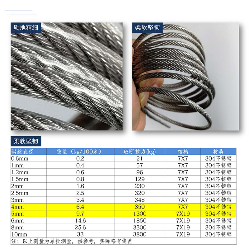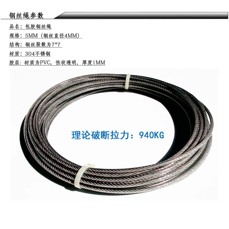304 stainless steel coated steel wire rope 5MM and accessories clothesline traction rope guardrail windproof Rope rattan frame