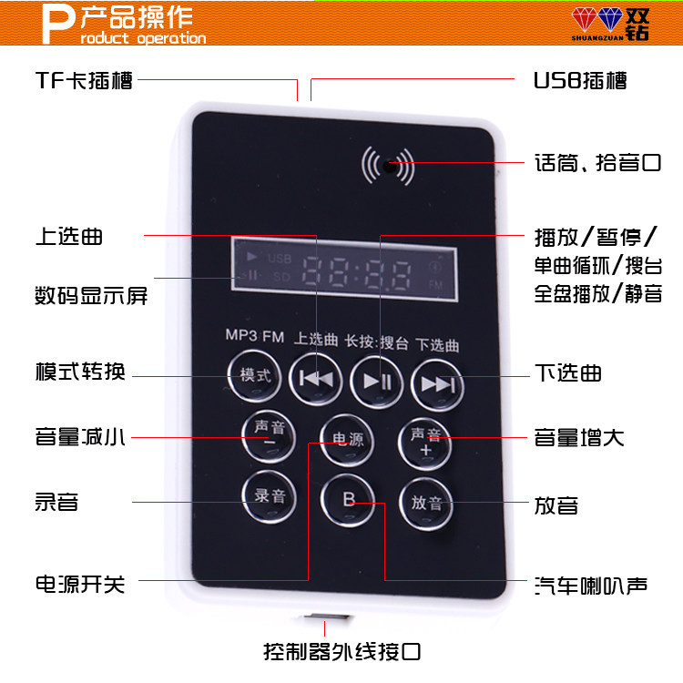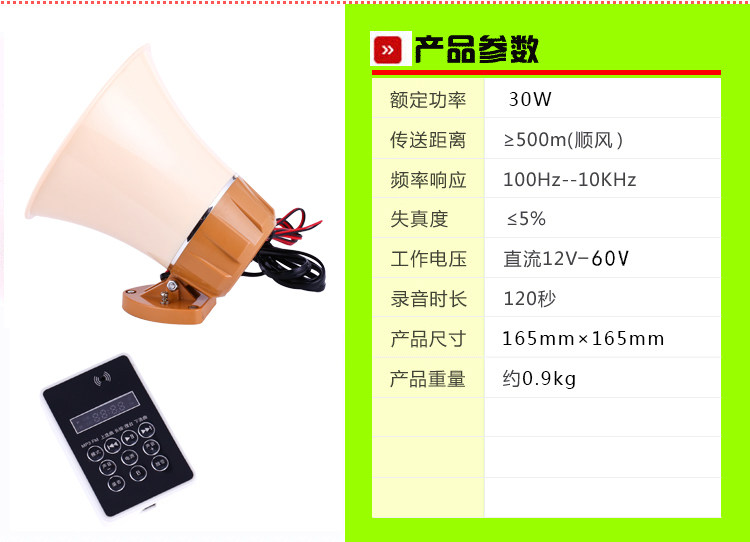 12-60V car high-power 120 seconds recording megaphone huckster promotional speaker Plug-in card plug-in U disk