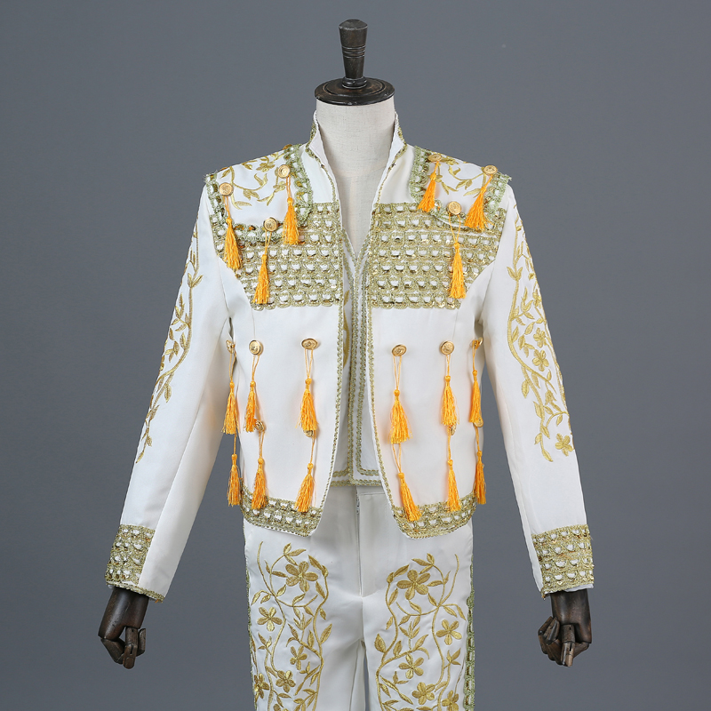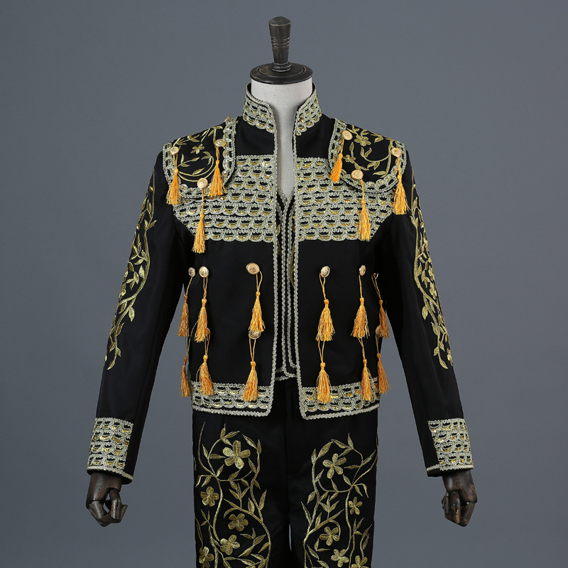 Men's Spanish bullfighter costume stage European court plays out the bulldance suit embroidered flower-three sets-Taobao