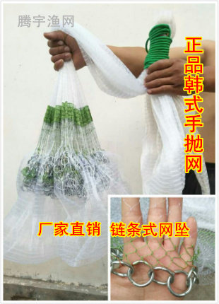 Korean close-eyed hand cast net Traditional cast net Iron chain hand cast net net net net small net spin net Fishing net Play fishing net