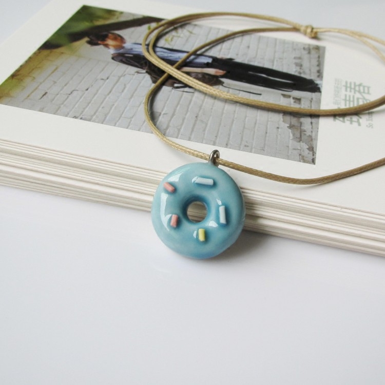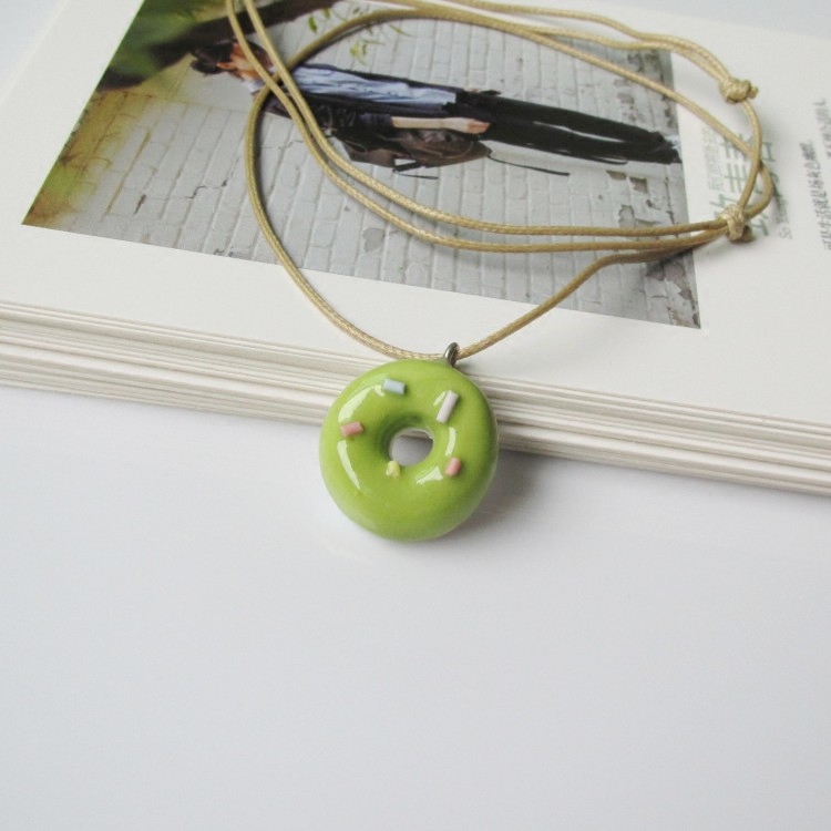 Clear cabin small fresh and green buckle ceramic necklace girl lock bone chain sen Jingdezhen Ceramics Ornament
