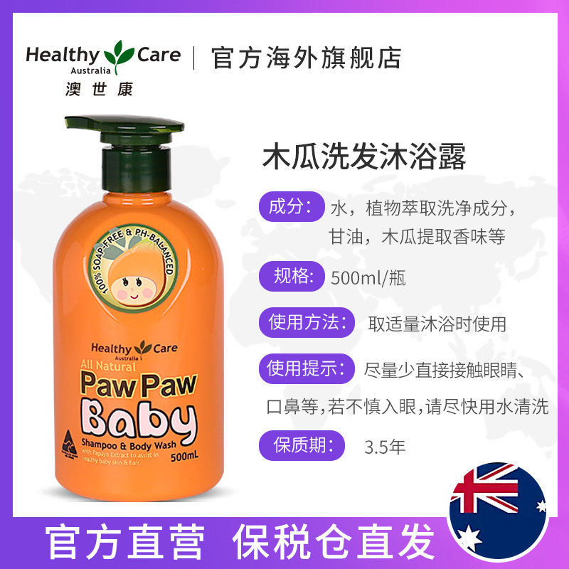 Healthy Care All Natural Baby Papaya Shampoo Body Wash 2 in 1 500ml bottle Children's Wash