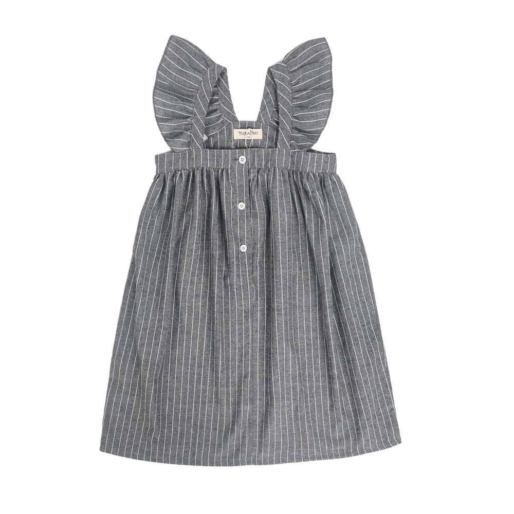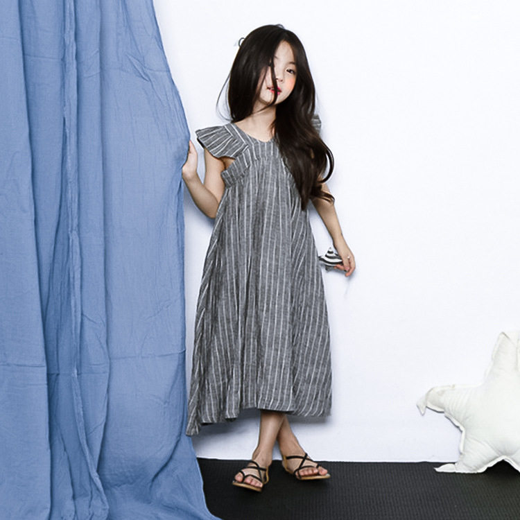 Summer Clothing Girl Striped Dew Back Harness Foreign Dress CUHK Child Loose Lotus Leaf Side Flying Sleeve Beach Skirt Child Long Dress