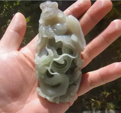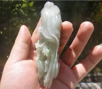 Hetian Jade Qinghai Kunlun jade handle piece handmade carved emerald jade(fake one lost ten)