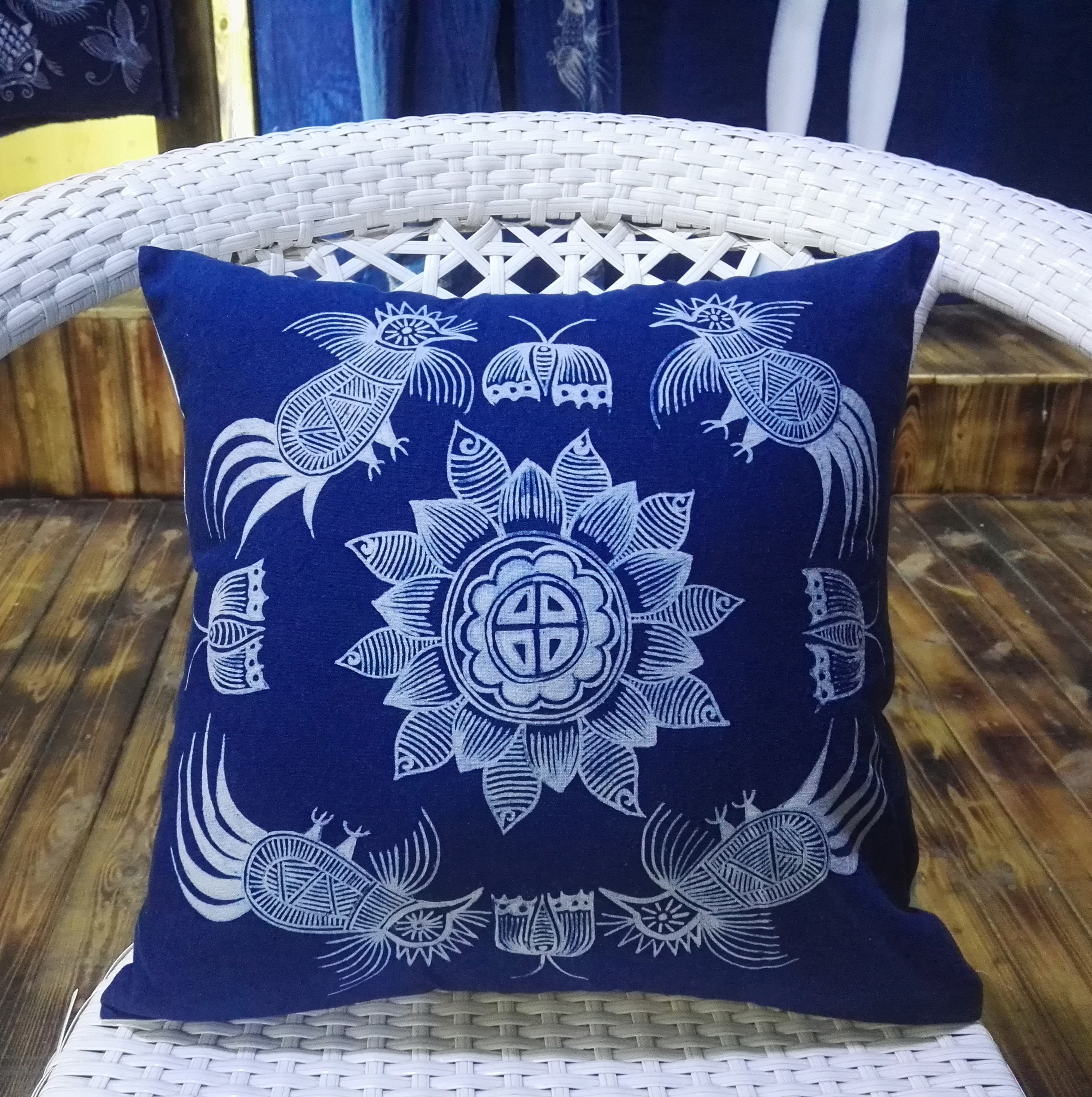 Wax dyeing hug cushion cushions cushion sleeve set for processing pattern painting Danzhai Wax Dyeing and Miao Dyeing Skills Experience