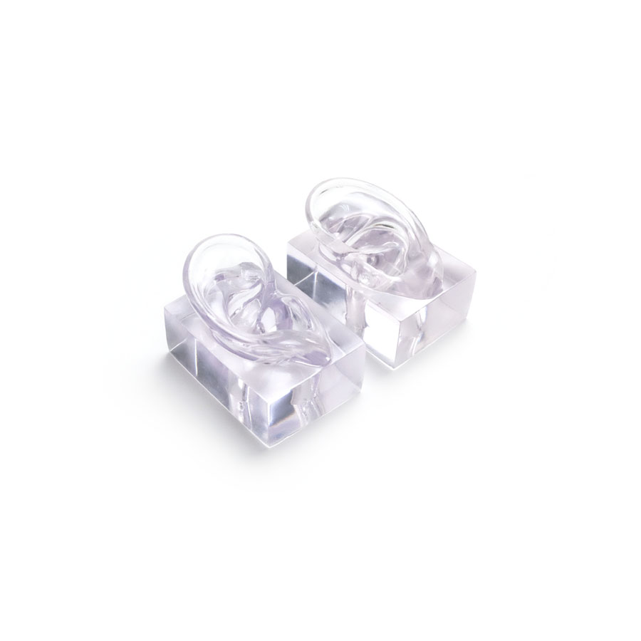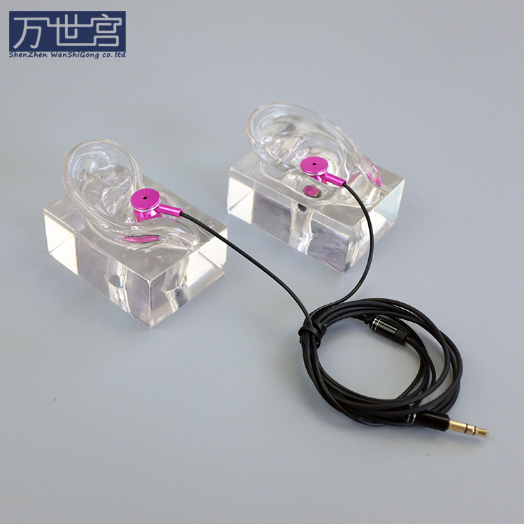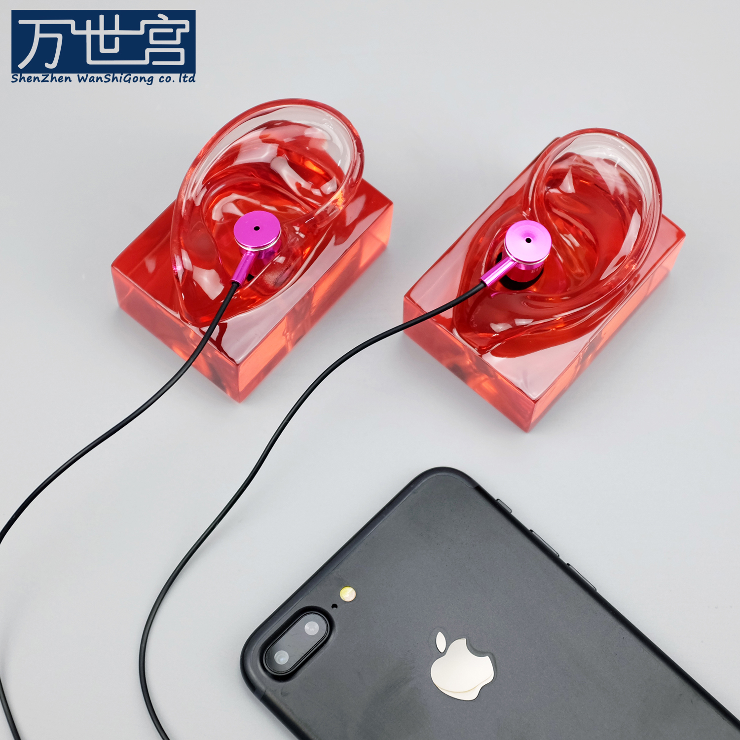 Real-life ratio left and right ear model crystal transparent human organ in-ear earphone display prop display stand
