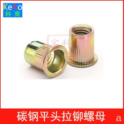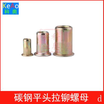 Carbon steel flat head rivet nut Pull rivet nut Pull cap Flat head vertical stripe wrench mother M3 4 5 6 8 10 12