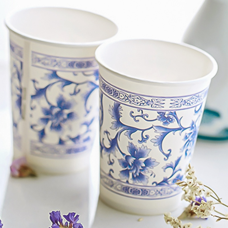 9 oz blue and white porcelain disposable cup whole box of 500 healthy and environmentally friendly thickened office paper cups customized