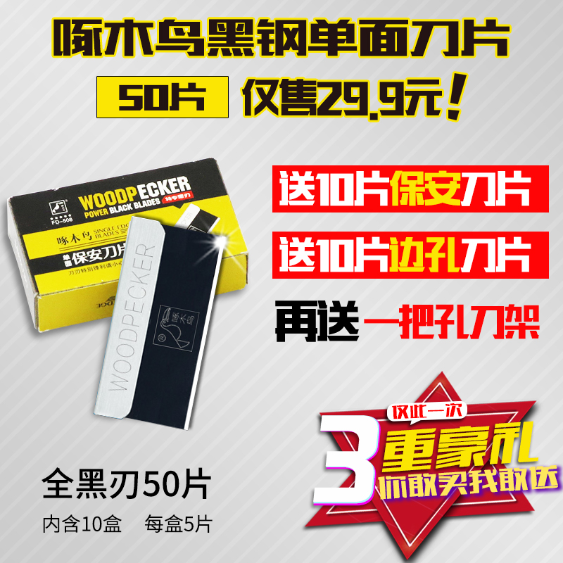 Woodpecker black edge single side 50 pieces Woodpecker black edge single side 100 pieces Woodpecker black steel edge hole 50 pieces Woodpecker black steel edge hole 100 pieces