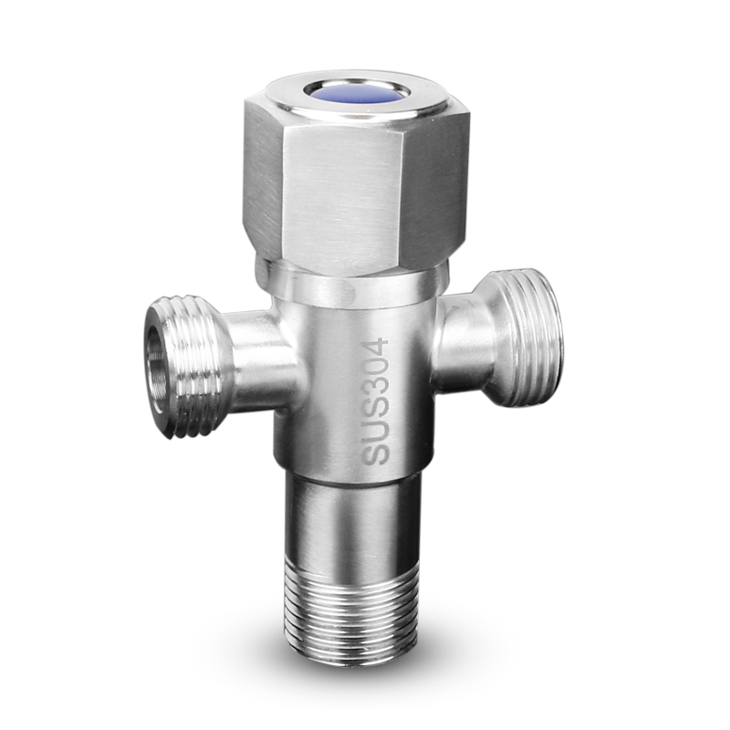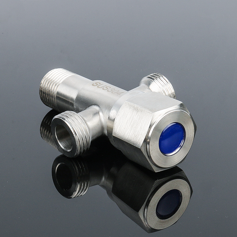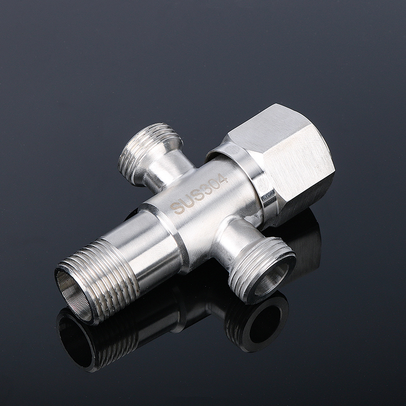 304 stainless steel three-way angle valve one in two out 4 points hot and cold thickened explosion-proof valve double outlet universal angle valve