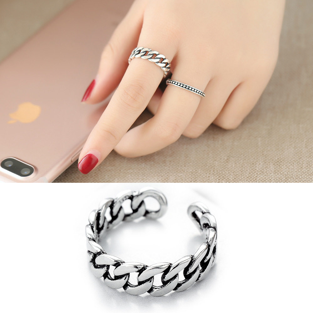 Wei Yu Ying Railway Wu Guan Same Super Link Ring S925 Style Silver Fashion Renaissance Chain Opening Ring Ring