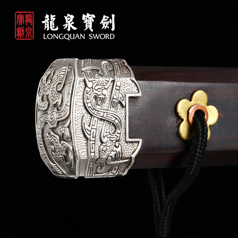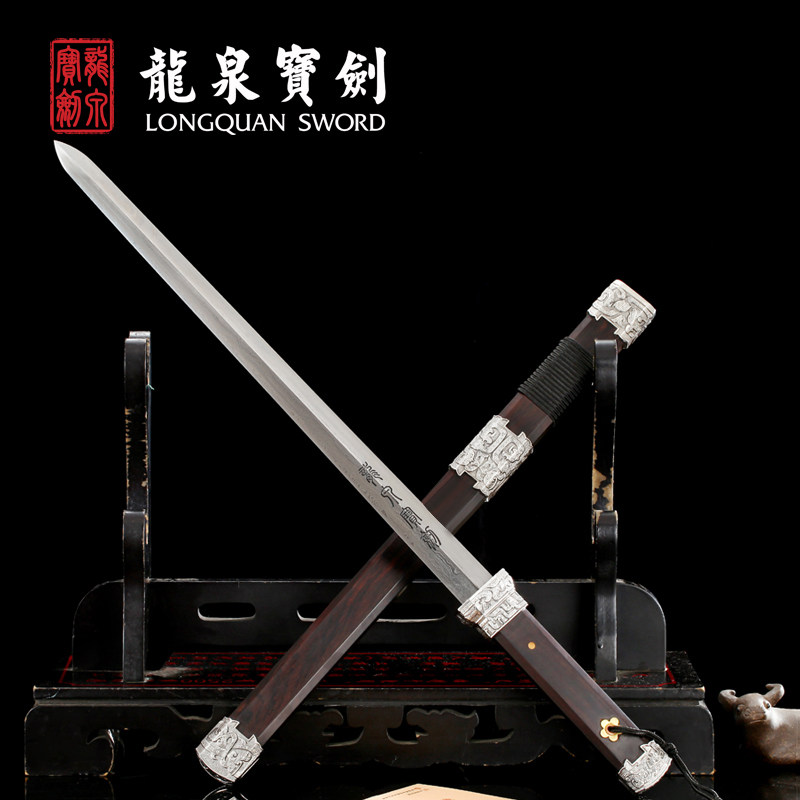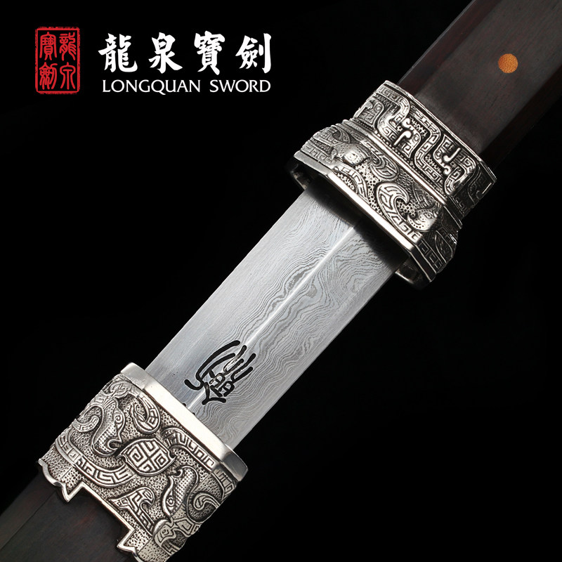 Dragon Quanbao sword flower pattern steel white iridescent short sword cutter anti-body cold soldier sword knife sword unopened blade Hard sword flagship store
