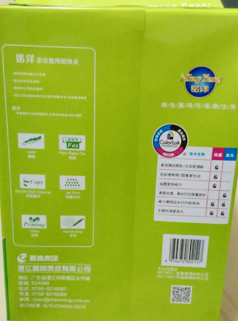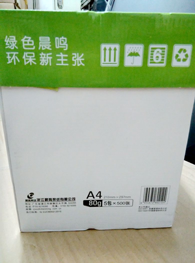 Chenming Mingyang a4 white paper 80 grams of pure wood paddle A4 office printing copy paper 5 packs*500 sheets Guangdong