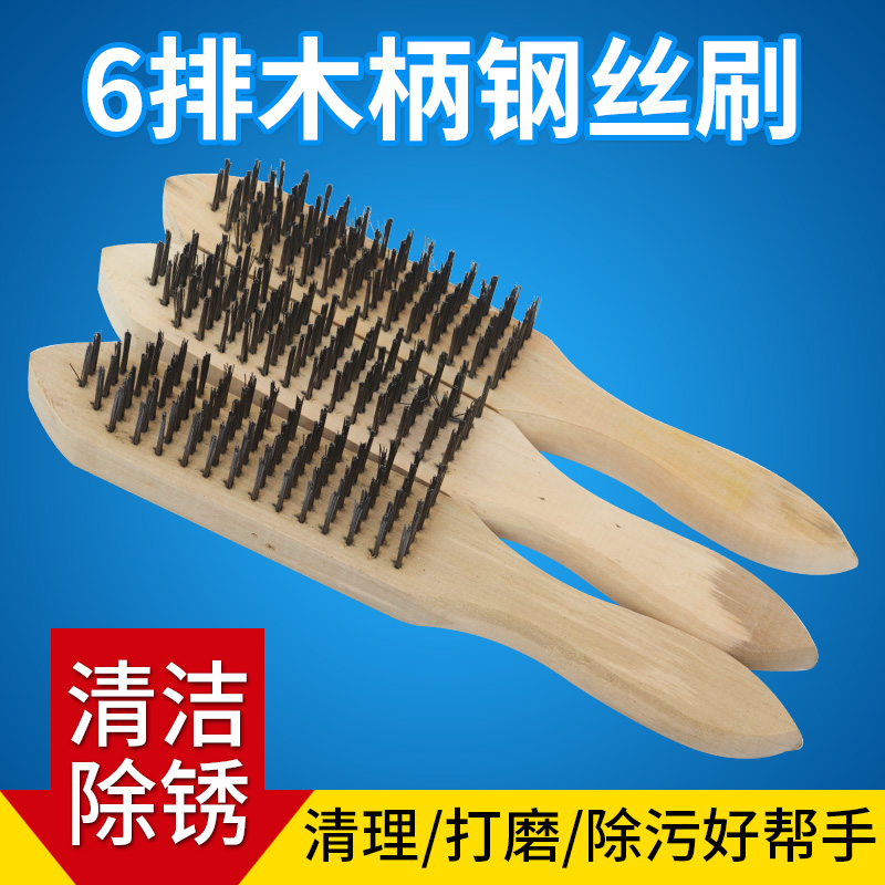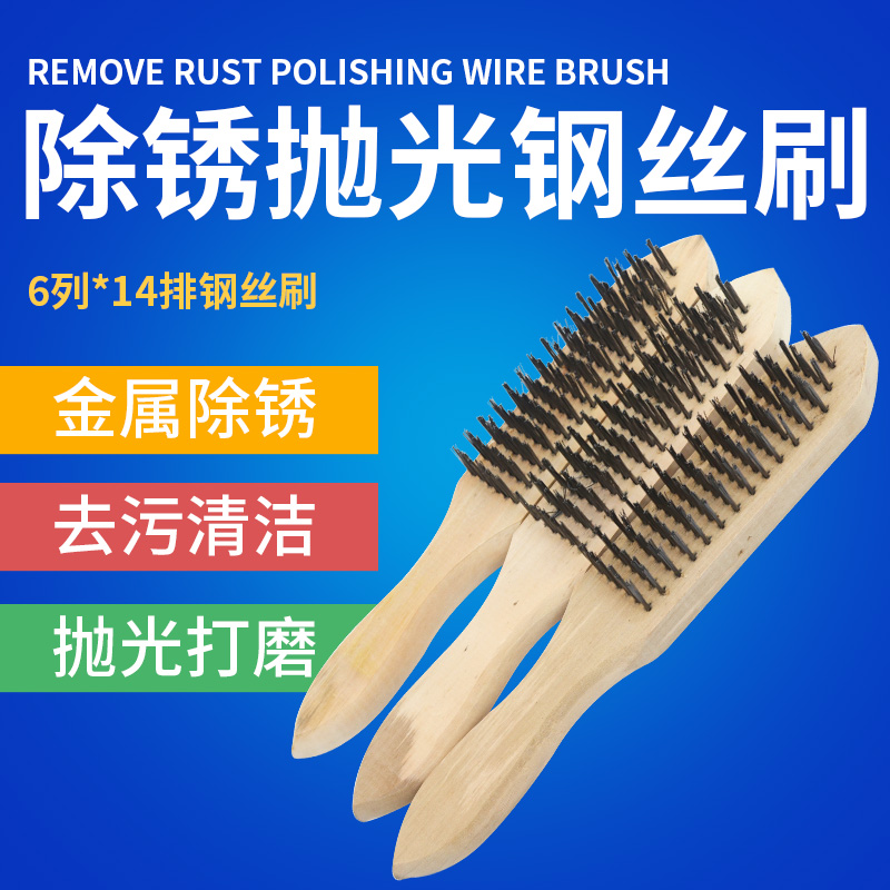 Wood handle metal rust removal surface brush cleaning and cleaning to remove oil stain steel wire brush remove iron rust tool fish scale brush