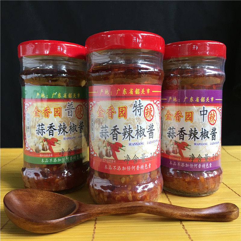 6 bottles of Shaoguan specialty 200g Jinxiangyuan garlic chili sauce Medium spicy chop pepper bibimbap sauce Super spicy chili sauce