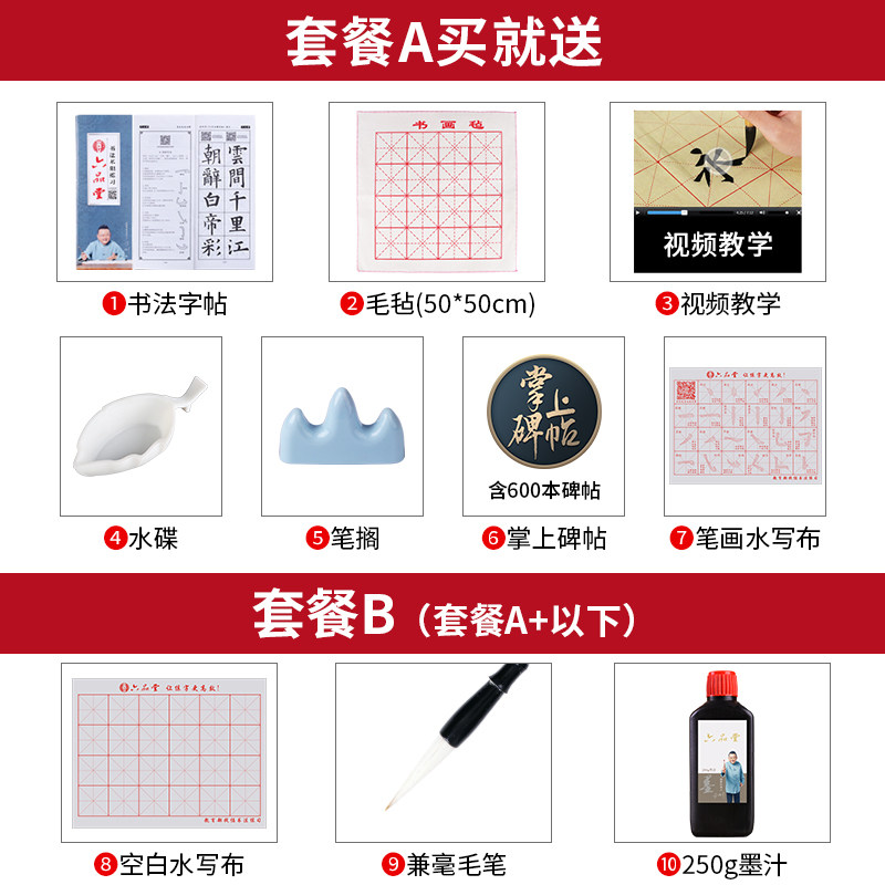 Bamboo pulp rice word grid hairy edge paper (no gift) package A (buy 1 get 7) copybook card felt water disc pen water plate pen water writing cloth Palm tablet tablet tutorial Package B (buy 1 get 10) set
