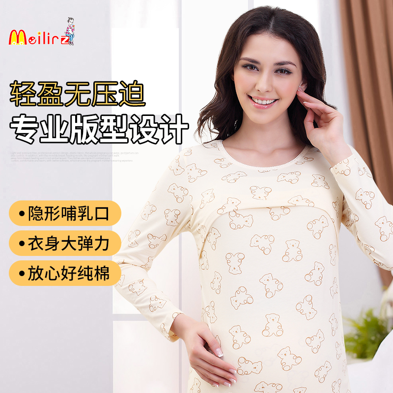 Lactation breast-feeding clothes autumn clothes pregnant women with pregnancy postnatal spring and autumn blouses pure cotton breathable casual home long sleeves