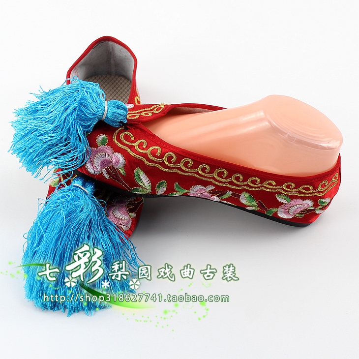 Colorful Pear Garden New Opera Peking Opera Film and Television Xiuhe Bride Red Wedding Shoes Tsing Yi Huadan Embroidered Flat Color Shoes
