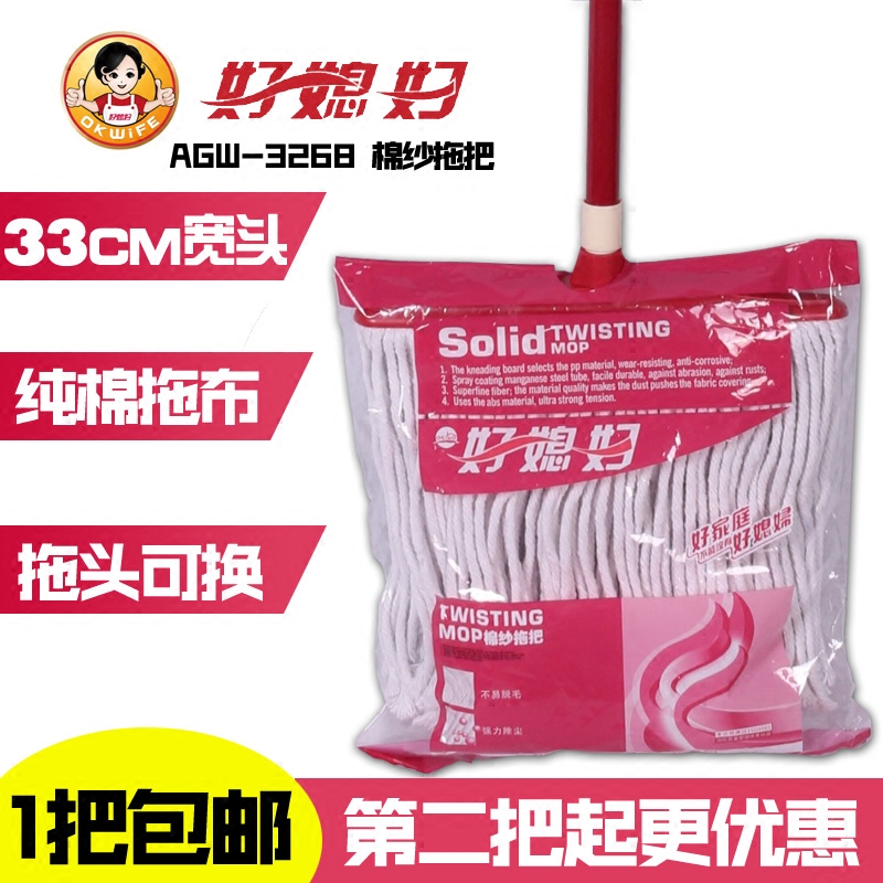 Good daughter-in-law household traditional cotton yarn mop 33CM widened large pier cloth cotton thread old-fashioned to drag cotton strips to absorb water