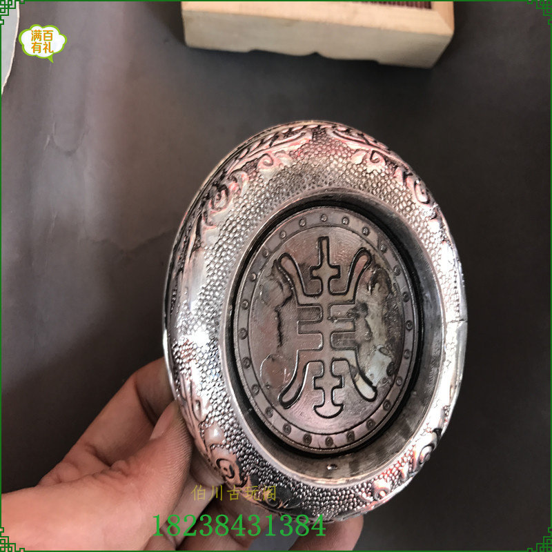 Antique silverware Silver plated Tibetan silver 925 pure copper silver bowl ornaments White copper imitation silver craft gift ornaments Antique miscellaneous collections