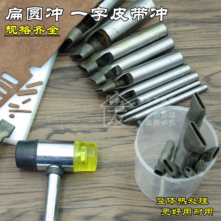 Flat round puncher, rounded punch, oval belt, belt punching tool, leather opening tool