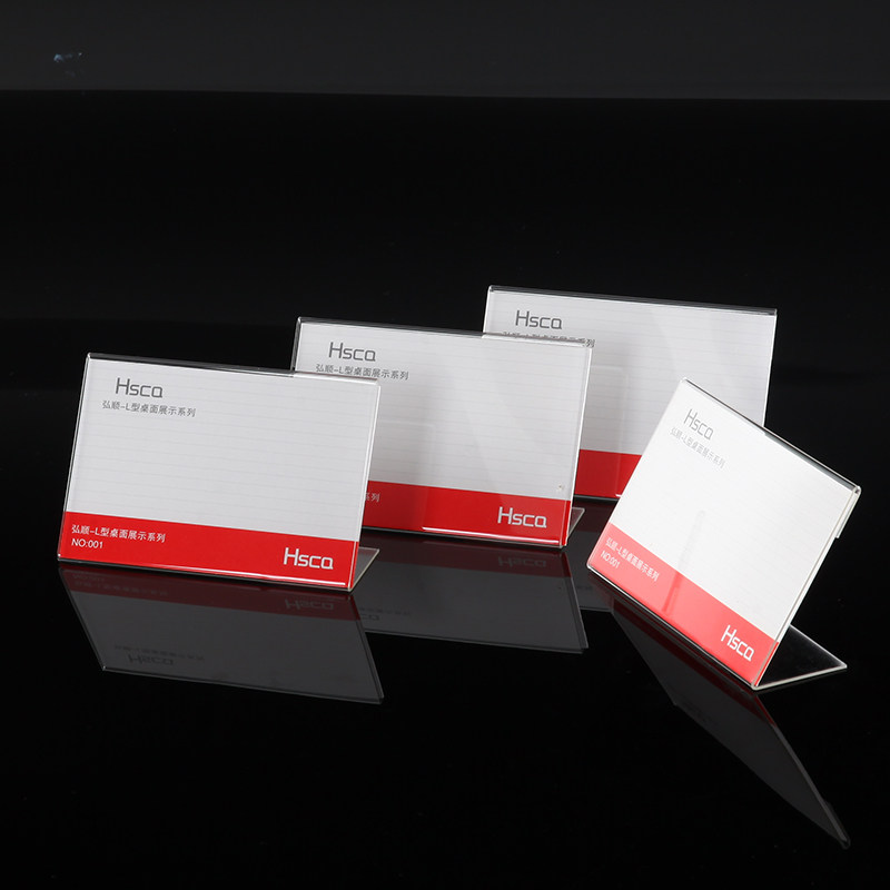 Acrylic L type desk card in the form of a