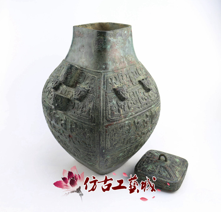 Ancient Play Antique Bronze Ware Shang Dynasty Antique Bronze Ware Pendulum Piece Handicraft Bronze Gift Ware Wine and Jar Square