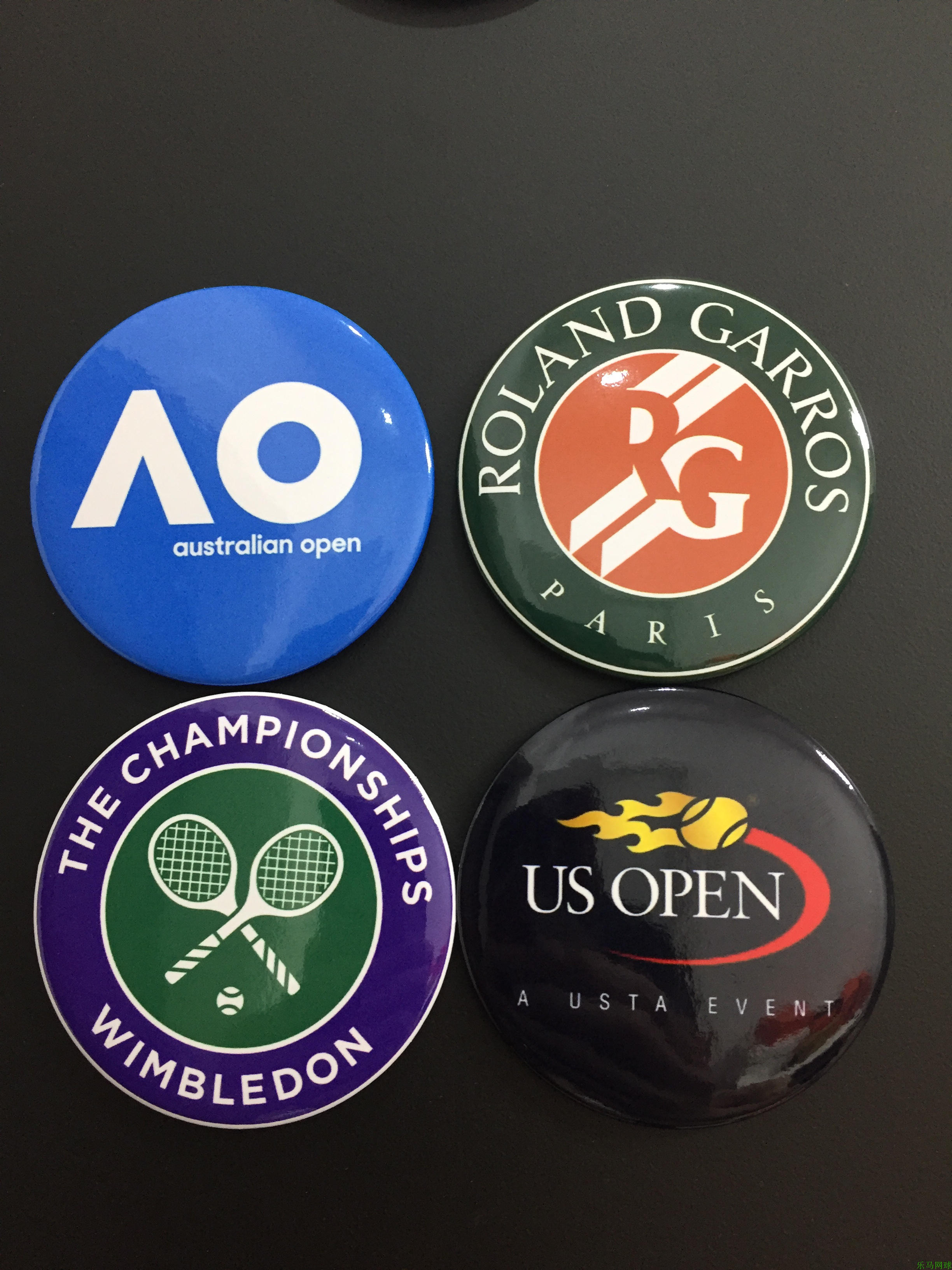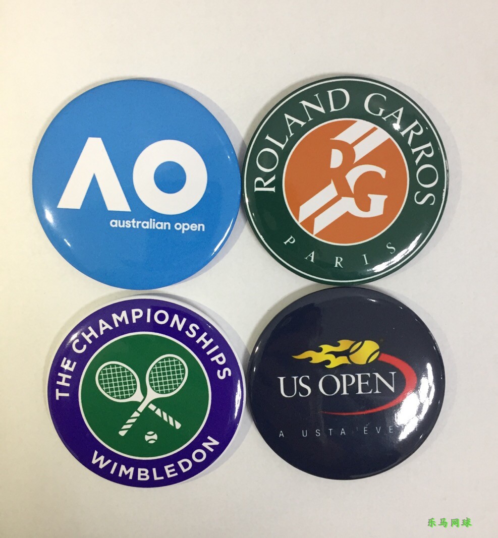 Four Grand Slam refrigerators with a set of four Australian nets refrigerators glued to a web fridge with a winnet fridge appliqued with a meadler LOGO fridge with a small DeLOGO fridge sticker
